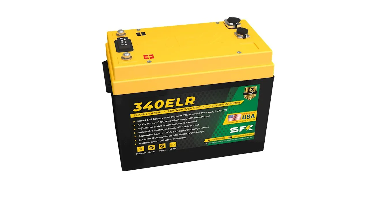 When you need capacity above all else the 340ELR is your battery of choice. Using REPT 345 cells that test well into the mid 350AH, the 340ELR sets the bar for most capacity in its class. Featuring our latest network card that adds support for Zigbee & Thread, Bluetooth 5, and a FCC certified ESP32 MCU, the 340ELR includes all the SFK enhancements such as Enhanced Victron communications, triple heating modes (low temp, standby, or Venus OS/Victron controlled) with new hardware I/O with a waterproof usb-c port and more app features than any of the SFK batteries preceding it.